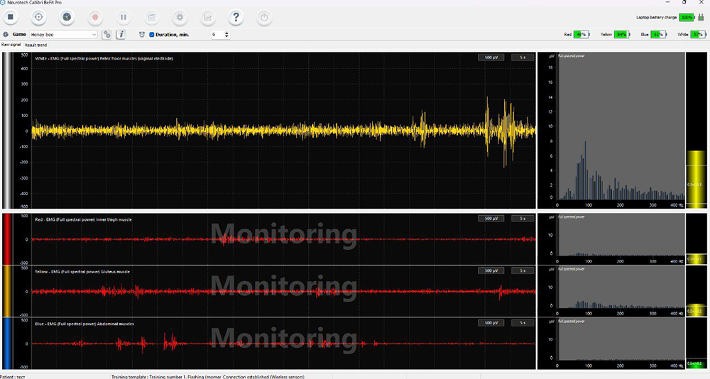 The wireless design of the complex minimizes artifacts and ensures high-quality recording of muscle contractions during pelvic floor muscle training