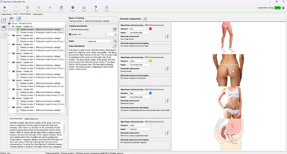 The BFB training method is intended for rehabilitation procedures to restore the functional capabilities of the pelvic floor muscles and is not diagnostic. Therefore, both a physician (urologist, gynecologist, proctologist, sexologist) and mid-level medical personnel (nurse) can work with the software and hardware complex Callibri BeFit PRO, acting in accordance with the instructions and recommendations of the attending specialist doctor. It is enough to train the nurse in the basic functionality of the software complex, the basic features of the device itself and the principles of the BFB method for the correct and effective operation of the entire urogynecology department.